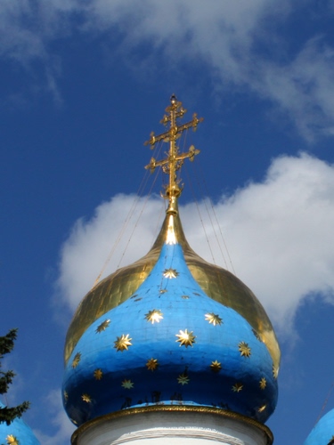Quella che sembra una croce doppia è in realtà la sovrapposizione prospettica di due croci che coronano due cupole del Monastero della Trinità, a Sergiev Posad (Russia), non lontano da Mosca.