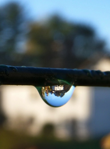 Tag: goccia, casa, macro, acqua, riflesso, alberi, ramo, sfocato, rovesciato, azzurro, cielo.