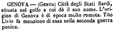 Genova - (Genua) Città degli Stati Sardi, situata nel golfo a cui dà il suo nome. L'origine di Genova è di epoca molto remota. Tito Livio fa menzione di essa nella seconda guerra punica. [immagine]