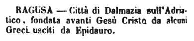 Ragusa - Città di Dalmazia sull'Adriatico, fondata avanti Gesù Cristo da alcuni Greci usciti da Epidauro. [immagine]